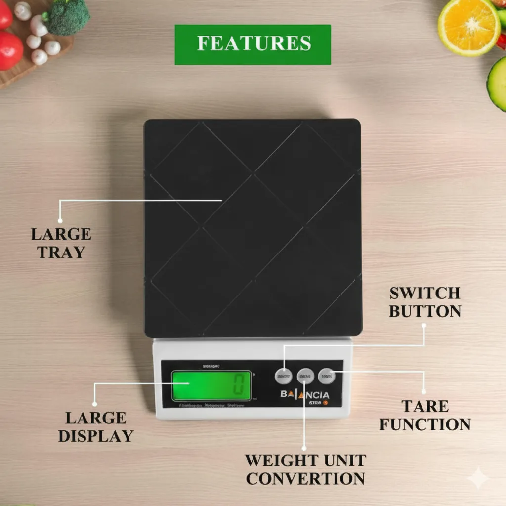 The Digitone® Digital Kitchen Food Weighing Scale (10Kg x 1g Capacity) is your perfect kitchen companion for achieving precision and consistency in every meal. Whether you’re a passionate baker, a fitness enthusiast, or someone pursuing healthy eating habits, this Digital Kitchen Food Weighing Scale ensures every ingredient is perfectly measured.